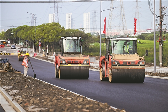 近日,由中铁建城通公司承建的江苏苏州强胜路接312国道工程沥青路面摊铺施工全面展开。该工程作为苏州市2024年民生实事重点项目,建成通车后将进一步完善区域交通网络格局,促进苏州市域一体化发展,助力区域经济高质量发展。新华社记者 季春鹏 摄