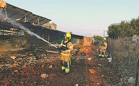 当地时间8月25日,在以色列北部加利利地区,消防人员在一处由火箭弹引起的火灾现场进行灭火。新华社发