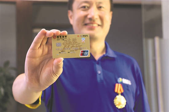 近日,山东青岛西海岸新区总工会、招商银行股份有限公司青岛分行举办“劳模工匠礼遇卡”发放仪式,全国五一劳动奖章获得者、青岛真情巴士驾驶员于义睦展示刚办好的卡。该卡通过聚合银行业资源,叠加出行、购物、娱乐、生活等多样服务场景,助力劳模工匠享有更充足的生活福利、更丰富的精神文化生活。杨明清 本报记者 张嫱 本报通讯员 李冉 摄