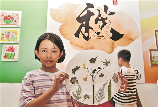 8月25日,在江苏省扬州市机关第三幼儿园,小朋友在家长的陪同下开展生态教育课。本报通讯员 庄文斌 摄
