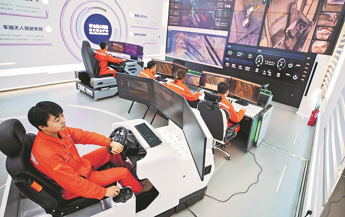 8月21日,新疆维吾尔自治区昌吉回族自治州,一家能源企业的工作人员正通过智能化管控平台组织生产。通过该平台,企业在生产过程中可实现地理信息自动采集、智能三维设计、远程操控装车、无人运输等全过程的智能化作业。