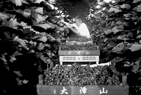 9月4日,山东青岛平度市大泽山镇南昌村村民采摘葡萄。