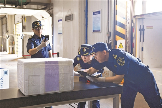 9月8日,长沙海关关员在验核货物信息。