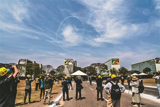 当地时间9月7日,人们在巴西首都巴西利亚举行的独立202周年庆典活动上观看飞机特技表演。