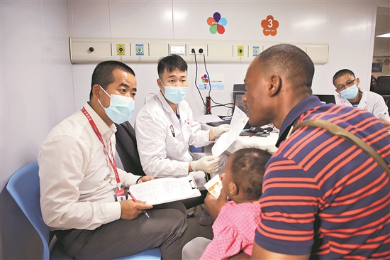 执行“和谐使命-2024”任务的中国海军“和平方舟”号医院船结束对安哥拉的7天友好访问,当地时间9月11日驶离罗安达港,前往本次任务第七站刚果(布)。图为近日中国海军“和平方舟”号医院船在安哥拉罗安达开展医疗服务。 新华社发 (刘志磊 摄)