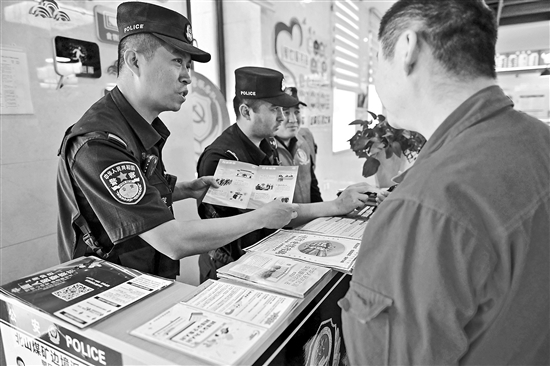 近日,在新疆准东经济技术开发区北山煤矿矿区民警暖阳服务站,北山煤矿边境派出所民警联合“北山义警”服务队向辖区职工发放反诈宣传资料。当地派出所通过科技智慧与多方协同治理,建立“机制+专业+大数据”协同型、数字型、主动型生态警务运行系统,赋能千里矿区安全高质量发展。新华社记者 丁磊 摄