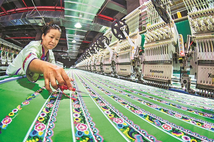 近年来,贵州省黔东南苗族侗族自治州从江县通过减税降费、助企纾困等政策,加大对民族刺绣产业的扶持力度,引进智能绣花设备,实现产品迭代升级,节省了人力成本,提升了生产效率,推动刺绣产业由传统加工向数字化、智能化转型。