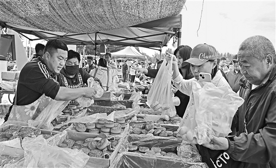 9月15日,市民和游客在红旗大集上购买月饼。