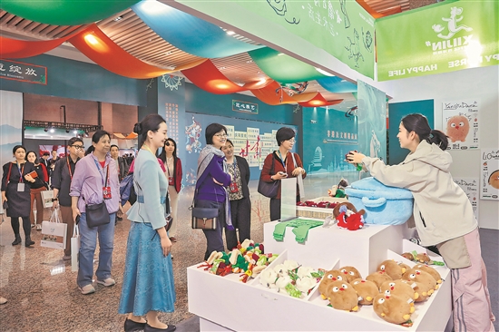 9月21日,与会嘉宾在第七届丝绸之路(敦煌)国际文化博览会上参观非遗及文创精品展。