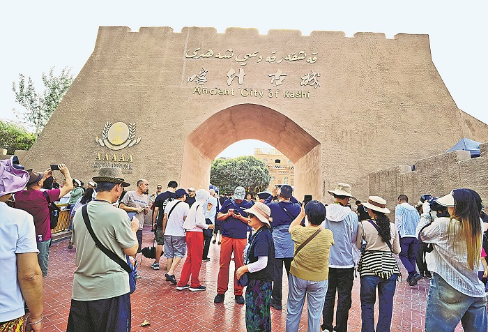 新疆喀什古城景区是我国少有的特色迷宫式城市街区和生土建筑群。如画的自然风光、独特的人文风情吸引着国内外游客。今年1月~7月,喀什地区累计接待游客2824.25万人次,实现旅游收入241.2亿元,同比分别增长33.9%、41.99%。本报记者 吴铎思 摄