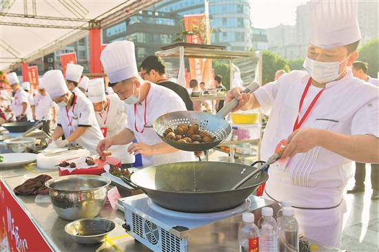 9月20日,四川省南充市2024年名厨工匠烹饪职业技能大赛在蓬安县举行,吸引来自南充市内外餐饮行业的20支代表队100余名厨师,在热菜、创意菜、雕刻等比赛项目中同台竞技。本报通讯员 彭圣洲 摄