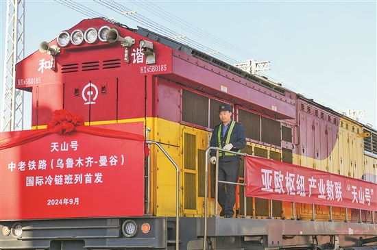 当日,满载463.5吨新疆鲜食葡萄的国际冷链专列,从乌鲁木齐国际陆港区始发,经云南磨憨口岸出境,最终抵达泰国首都曼谷。这标志着“产地集货+冷链班列”跨境物流模式正式落地新疆,为当地优质产品打通了直达东南亚国家的冷链物流通道。