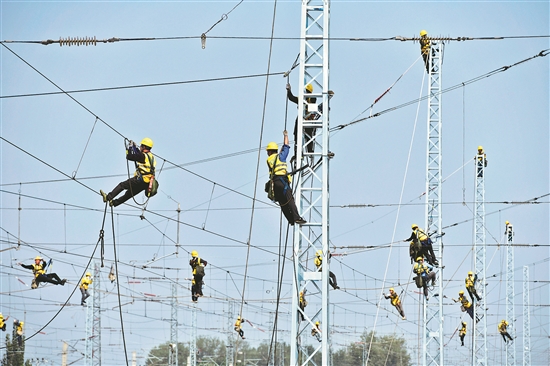 当日,雄商高铁山东郓城至梁山段实施郓城站和梁山站大要点站改作业。本次站改包括站场线路改造、四电工程改造和新建郓城站、梁山站综合楼等内容。新华社记者 郭绪雷 摄