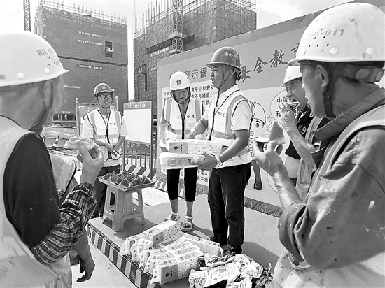 近日,重庆持续高温,为切实做好建筑工人劳动保护和防暑降温工作,渝北职工帮扶基金会、禾木社工联合辖区建筑工地开展系列关怀活动,为坚守一线的建筑工人们送上关怀和“清凉”。