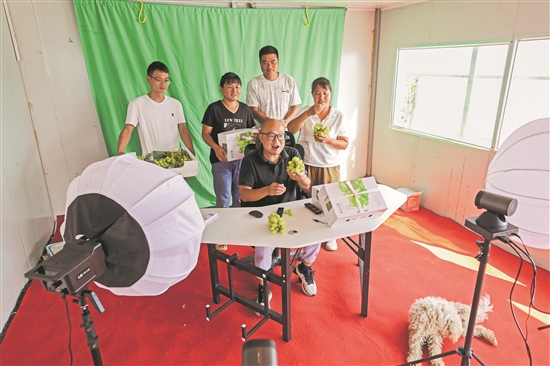 “这一套设备3万多元,我现在天天研究直播。”9月25日,在江苏省南京市栖霞区八卦洲坝上鲜果园,徐磊和他的团队正搬运葡萄准备直播卖货。