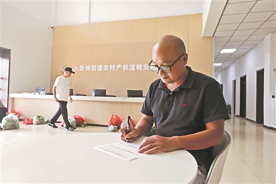 徐磊在街道农业农村办对抽检的农产品进行签字。