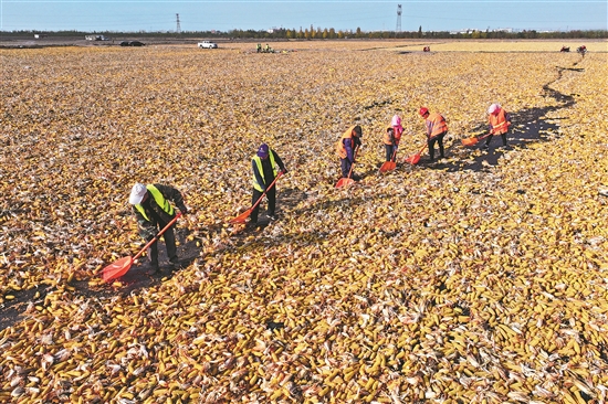 9月21日,甘肃省临泽县倪家营镇,数十万亩制种玉米喜迎丰收。本报通讯员 安学海 摄