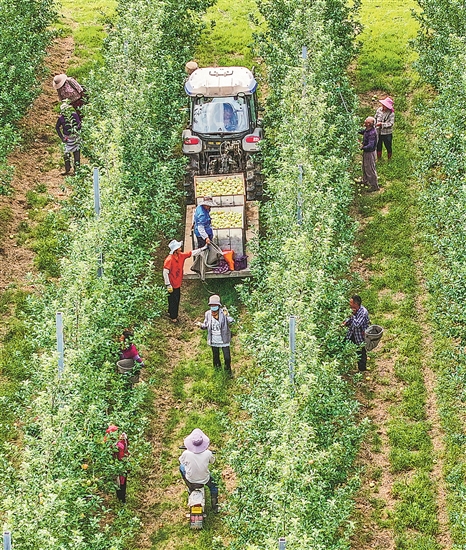 9月25日,江苏省宿迁市洋河新区斯味特万亩苹果园,果农们正在采摘苹果。本报通讯员 陈少帅 摄