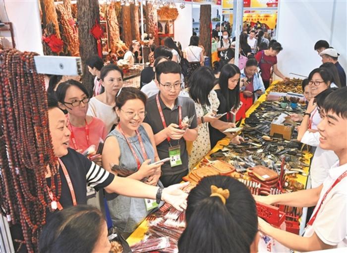 图为 9月28日,观众在中国—东盟博览会越南商品馆挑选商品。新华社记者 周华 摄