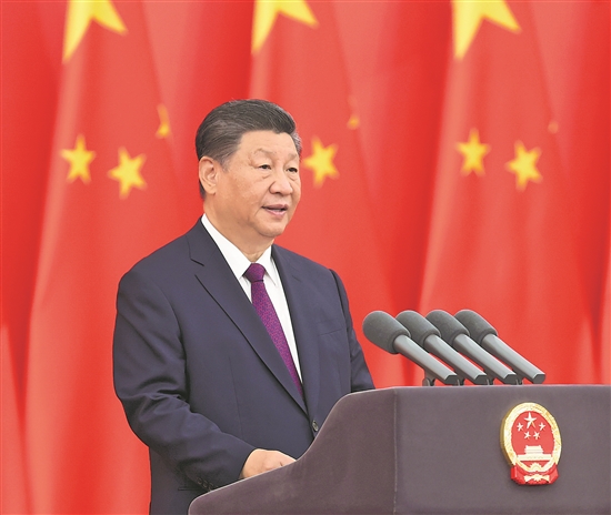 习近平强调,新的画卷需要我们共同描绘,新的历史需要我们共同开创。要锚定目标、勠力同心、开拓进取,共同谱写人民共和国更加绚丽精彩的新篇章。(讲话全文另发)
