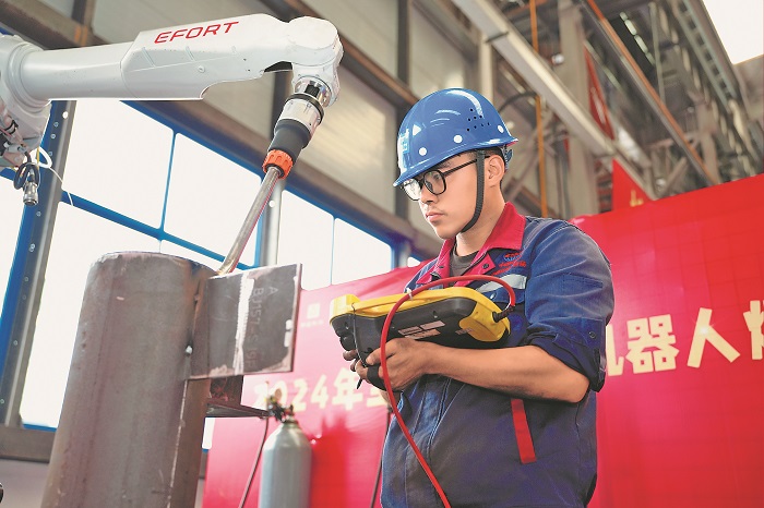 9月24日至26日,江苏省钢结构机器人焊接职业技能竞赛决赛举行,选手一律使用智能焊接机器人进行比拼。竞赛由江苏省机冶石化工会、省建设工会等联合主办。本报记者 黄洪涛 摄