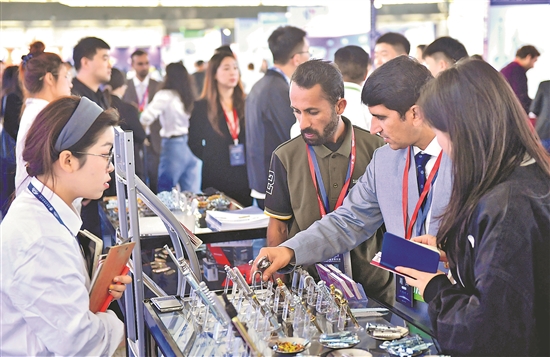 10月10日,采购商在采购大会上挑选紧固件产品。