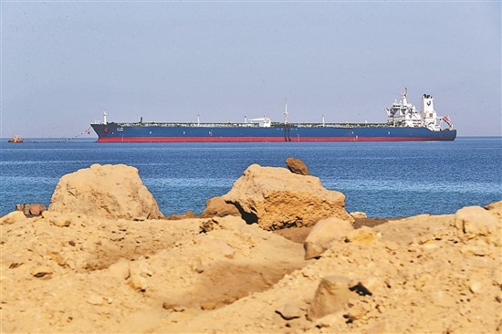 图为当地时间10月8日在埃及苏伊士湾拍摄的行驶中的船只。新华社记者 隋先凯 摄