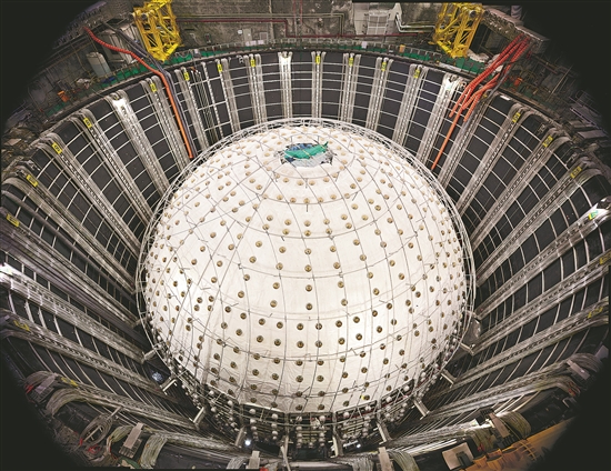 据中国科学院高能物理所消息,江门中微子实验建设目前已经进入收官阶段,最内层的有机玻璃球已合拢,外层的不锈钢网架和光电倍增管也在有序合拢中,预计11月底将完成全部安装任务。江门中微子实验以测量中微子质量顺序为首要科学目标,并进行其他多项重大前沿研究,建成后将成为国际中微子研究中心之一。
