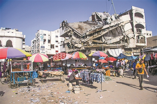 这是近日在加沙地带北部杰巴利耶地区拍摄的一处集市。以色列军队近日对包括该地区在内的加沙地带北部持续发动袭击,造成多人死亡。