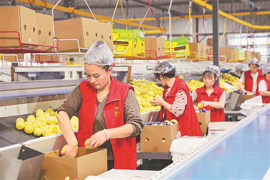 10月17日,在资阳市安岳县四川省维记农业集团有限公司车间内,工作人员将分选后的柠檬装箱。