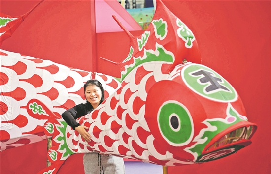 市民怀抱“汪满田鱼灯”拍照。张勇 摄/中新社