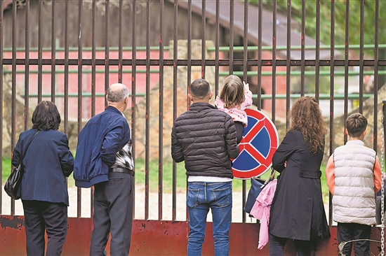 当地时间10月19日,在北马其顿斯科普里,游客透过栅栏向园内观望。