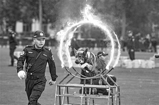10月22日,第六届全国警犬技术比赛在北京举行。来自全国各省区市公安机关、公安部垂管单位以及国家移民管理局共38支参赛团队的255名训导员携219头警犬,同场竞技,激烈角逐。据悉,公安部刑侦局每四年举办一次全国警犬技术比赛。白法泉 摄