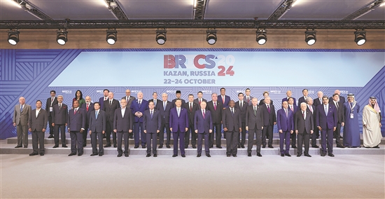当地时间10月24日上午,国家主席习近平在喀山会展中心出席“金砖+”领导人对话会并发表题为《汇聚“全球南方”磅礴力量 共同推动构建人类命运共同体》的重要讲话。这是出席对话会的金砖国家及嘉宾国领导人或代表、国际组织负责人集体合影。