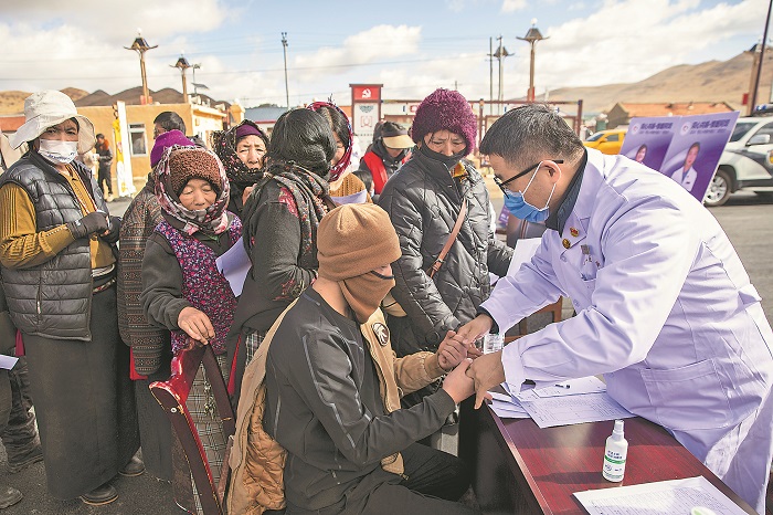 10月27日,四川省阿坝藏族羌族自治州阿坝县贾洛镇,来自北京的医疗专家正在为当地群众进行义诊。