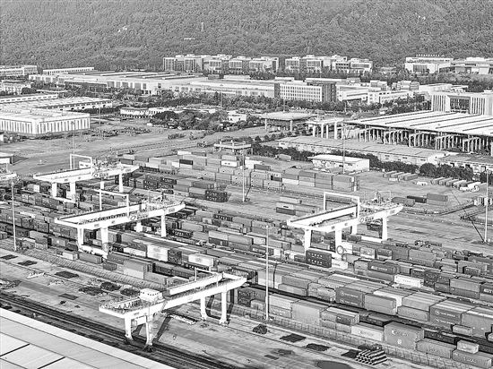 位于西部(重庆)科学城沙坪坝片区的重庆国际物流枢纽园区正是其中的陆港型枢纽。该园区包含团结村中心站、西部陆海新通道重庆无水港、重庆铁路口岸等片区,是中欧班列始发地、西部陆海新通道策源地,目前已开通班列线路62条,通达全球125个国家和地区的542个港口,成为我国南向西向高水平对外开放的重要枢纽。新华社记者 王全超 摄