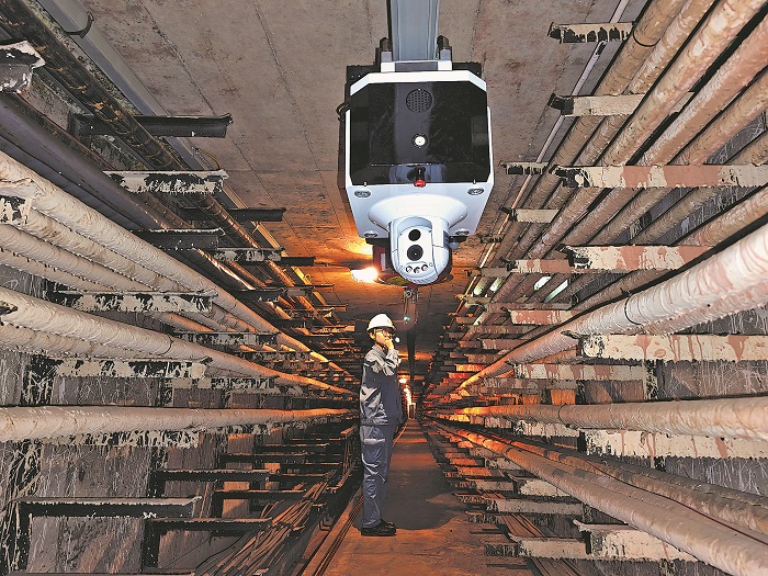 地下电缆隧道具有距离长、空间小、出入口少和封闭性强的特点,一旦有异常情况,难以被及时发现,且在火灾等紧急情况下疏散工人困难。为了应对这些挑战,仪征化纤引入智能巡检机器人,降低工人作业风险,提升安全监控能力。本报通讯员 刘玉福 高璨 摄