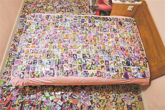 在广州一位市民家中,孩子购买的卡牌铺满卧室。这位市民表示,孩子一度痴迷卡牌盲盒,并花费大量时间和金钱,令家长十分忧心。