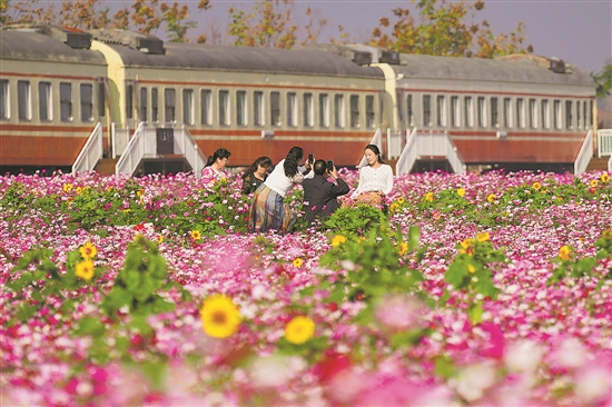 11月3日,安徽省合肥市肥东县梁园镇一观光农场,人们在格桑花海中欣赏美景。近年来,肥东县大力发展休闲农旅融合项目,带动周边居民就业,描绘乡村振兴新画卷。