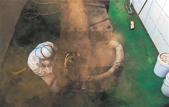 刺鼻的气味、腐蚀性的液体,让他人避之不及,而他们会毫不犹豫地将双手伸进装满除锈剂的盆里,用钢刷除去设备配件上的斑斑锈迹。即使戴着手套,有时也会被除锈剂浸透,无情地侵蚀着他们的皮肤。长时间下来,双手会严重脱皮、发炎,那红肿的双手令人心疼。