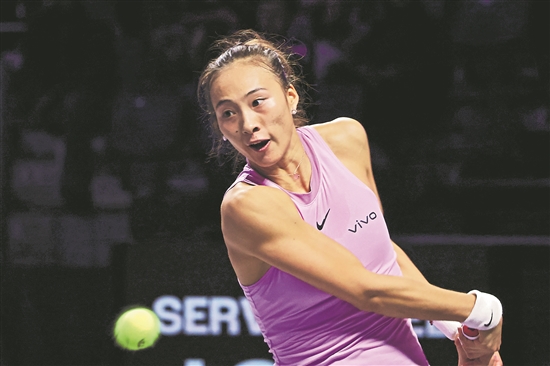 郑钦文在比赛中回球。新华社记者 王海洲 摄