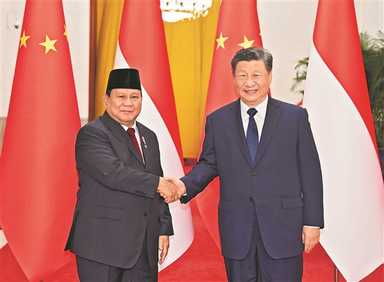 新华社北京11月9日电 (记者冯歆然)11月9日下午,国家主席习近平在北京人民大会堂同来华进行国事访问的印度尼西亚总统普拉博沃举行会谈。