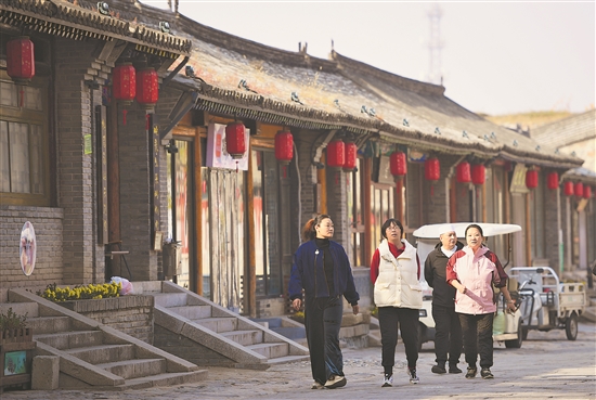 图为人们走在北京市延庆区八达岭镇的岔道古城。