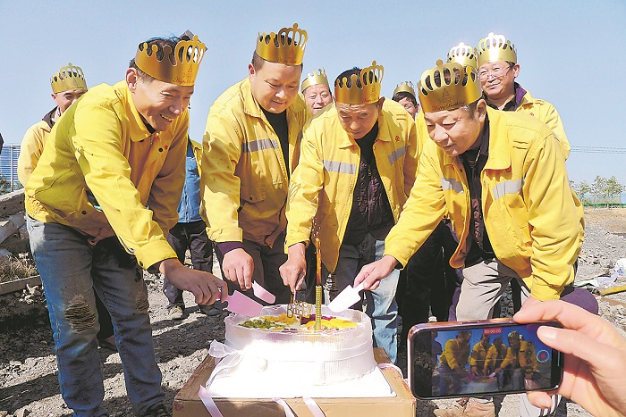 图为10月24日,班组职工在过集体生日。李建 朱玲 摄