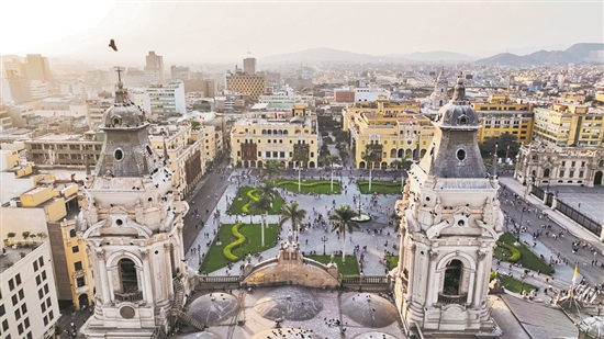 利马是秘鲁的首都和最大城市,位于太平洋海岸和安第斯山脉之间的狭长河谷地带,是该国的政治、经济、文化中心。利马终年气候宜人,有南美“花园城市”的美誉。利马是著名的历史文化名城,城区分为老城、新城两部分,其中的利马老城于1988年被列入世界文化遗产名录,拥有为数众多的历史遗迹。图为秘鲁首都利马老城的阿马斯广场(无人机照片)。