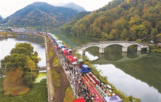 图为浙江省建德市乾潭镇“万乐民间物资交流活动”现场,300多个摊位沿路排开。