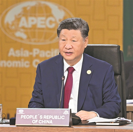 当地时间11月16日,国家主席习近平发表题为《共担时代责任 共促亚太发展》的重要讲话。 新华社记者 谢环驰 摄