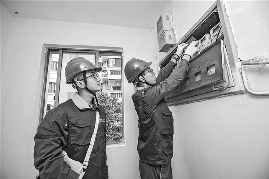11月13日,国网湖州供电公司工作人员在长兴县雉城街道皇家湾社区金宇花园给电表箱安装微型智能灭火装置,保障百姓平稳度冬。
