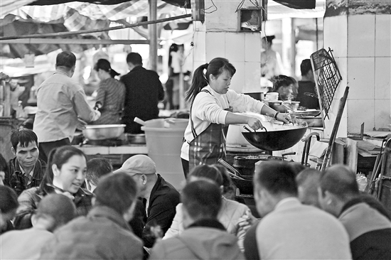 小煤炉火锅、简易的桌椅、现切的新鲜食材,大家围炉而坐,欢声笑语间如共进邻里百家宴……成团镇农贸市场的早市早餐有数十年历史,其独有的烟火气和浓浓的人情味,吸引越来越多市民和游客前来打卡。为推动“早市经济”健康发展,当地政府每天开展卫生、安全、交通等服务和督导工作,引导摊贩规范经营。新华社记者 黄孝邦 摄