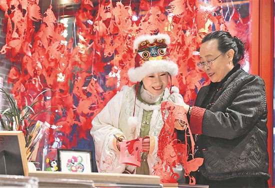 11月23日,市民在石家庄市新华区湾里庙步行街非遗工作室参观。